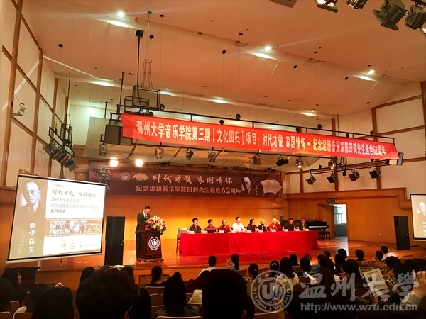 10月23日下午,我校音乐学院开展第三期文化回归项目,纪念温籍音乐家陈田鹤。温州市文联主席、温州市音乐家学会主席邹跃飞,校党委委员、组织部长郑信军,温州文化研究专家、原温州市社科联副主席洪振宁,文艺界的专家学者以及音乐学院师生相聚天瑞音乐厅,共话陈田鹤的音乐人生。