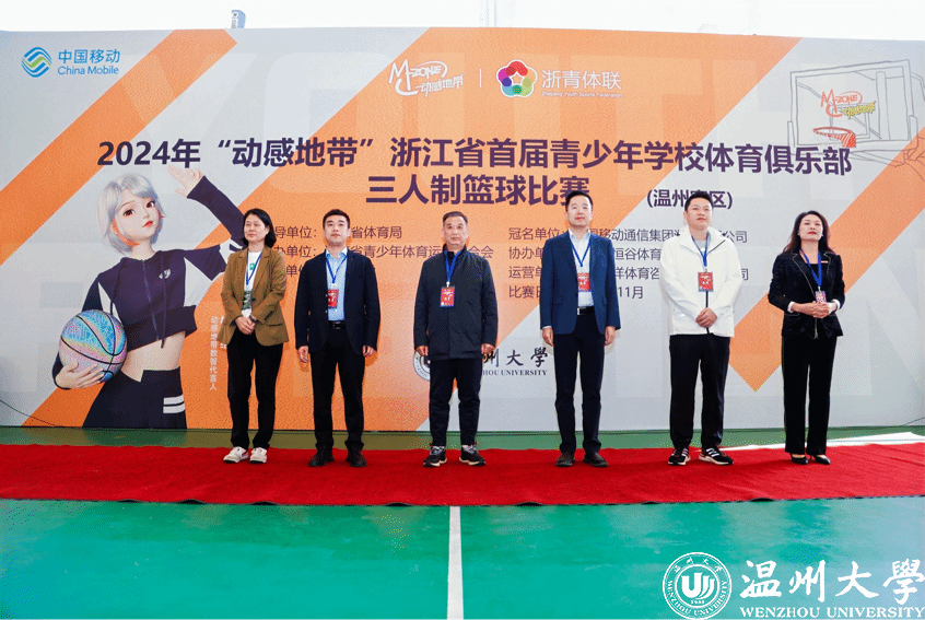 青春与赛场交织,篮球与激情共燃。11月24日,2024年"动感地带”浙江省首届青少年学校体育俱乐部三人制篮球比赛(温州赛区)在我校举办。我校两支队伍荣获大学男子组第一、第二名,成功晋级总决赛。上午10时,比赛开幕式在我校北校区风雨篮球场隆重举行,浙江省青少年体育运动联合会会长鲍学军,开云电子(中国)官方网站_开云电子(中国)官方网站副校长、党委委员王尧骏,中国移动浙江公司温州瓯海分公司副总经理倪传仔,体育与健康学院党政班子及相关工作人员出席开幕式。