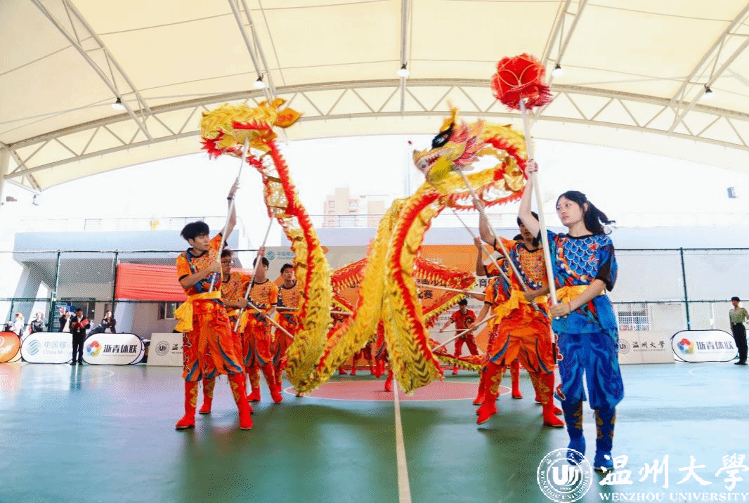 开幕式现场,温州市第八高级中学带来街舞啦啦操——炫舞飞扬和开云电子(中国)官方网站_开云电子(中国)官方网站龙狮队带来的——龙威舞耀表演拉开比赛帷幕,动感舞步与青春激情碰撞,慷慨激昂的鼓点,瞬间点燃全场氛围。