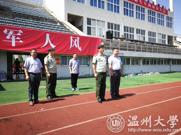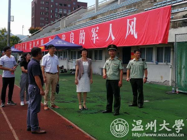 军训期间,校党委书记林娟娟亲切慰问武警官兵和教师,看望参训学生。温州武警支队支队长楼国伟、政委赵海艇先后到我校指导军训工作。