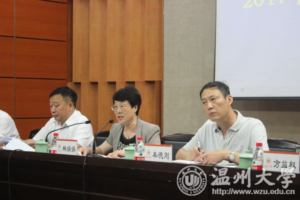 9月12日,我校2017年思政工作研讨会在雁山厅举行。校党委书记林娟娟,副书记牟德刚、赵敏,副校长方益权,党委委员、宣传部部长潘玉驹,党委委员、组织部部长郑信军,学工委委员,研工部、学生处、就业处、团委等有关部门负责人,各学区、学院书记、副书记,校本部全体辅导员,瓯江学院辅导员代表共140余人参加会议。
