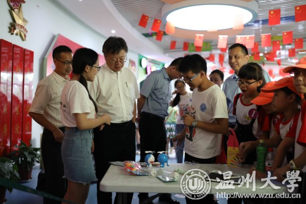 7月14日,副校长薛伟一行来到温州市乐清市虹桥镇合兴集团慰问机电学院“小候鸟”暑期社会实践队。薛伟参观了实践基地,与实践队员以及来参加夏令营活动的合兴集团员工子女们亲切交谈,了解他们实践和学习的情况。薛伟表示,实践活动的顺利开展离不开政府、社会和企业各界对大学生社会实践的支持,也离不开实践队成员的付出。