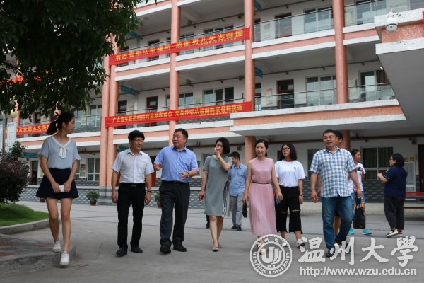 7月6日,校党委副书记牟德刚一行前往永嘉梧涨村文化大礼堂慰问瓯江学院“童趣同梦”、“风雨同舟”两支暑期实践队。牟德刚仔细查看了队员们食住的情况后,与师生们进行了亲切的交流。他表示,实践活动虽然条件比较艰苦,但这也是对我们意志的磨练,并强调队员们要注意安全,做好防暑降温等工作。同时,他也希望在实践过程中要应运用所学的知识,服务永嘉当地百姓。7月18日,牟德刚一行前往文成县玉壶镇中心小学慰问在那里实践的“亲情中华”温州市侨界留守儿童第八季快乐营玉壶分营的实践队员们并与他们一起座谈。座谈会上,牟德刚肯定了快乐营的成绩,强调了传承的重要性,并指出要把社会主义核心价值观融于实践的各个环节,希望“同学们像一颗种子,像一颗蒲公英,能够飞到各个营点,把明年的快乐营活动做得更好。”