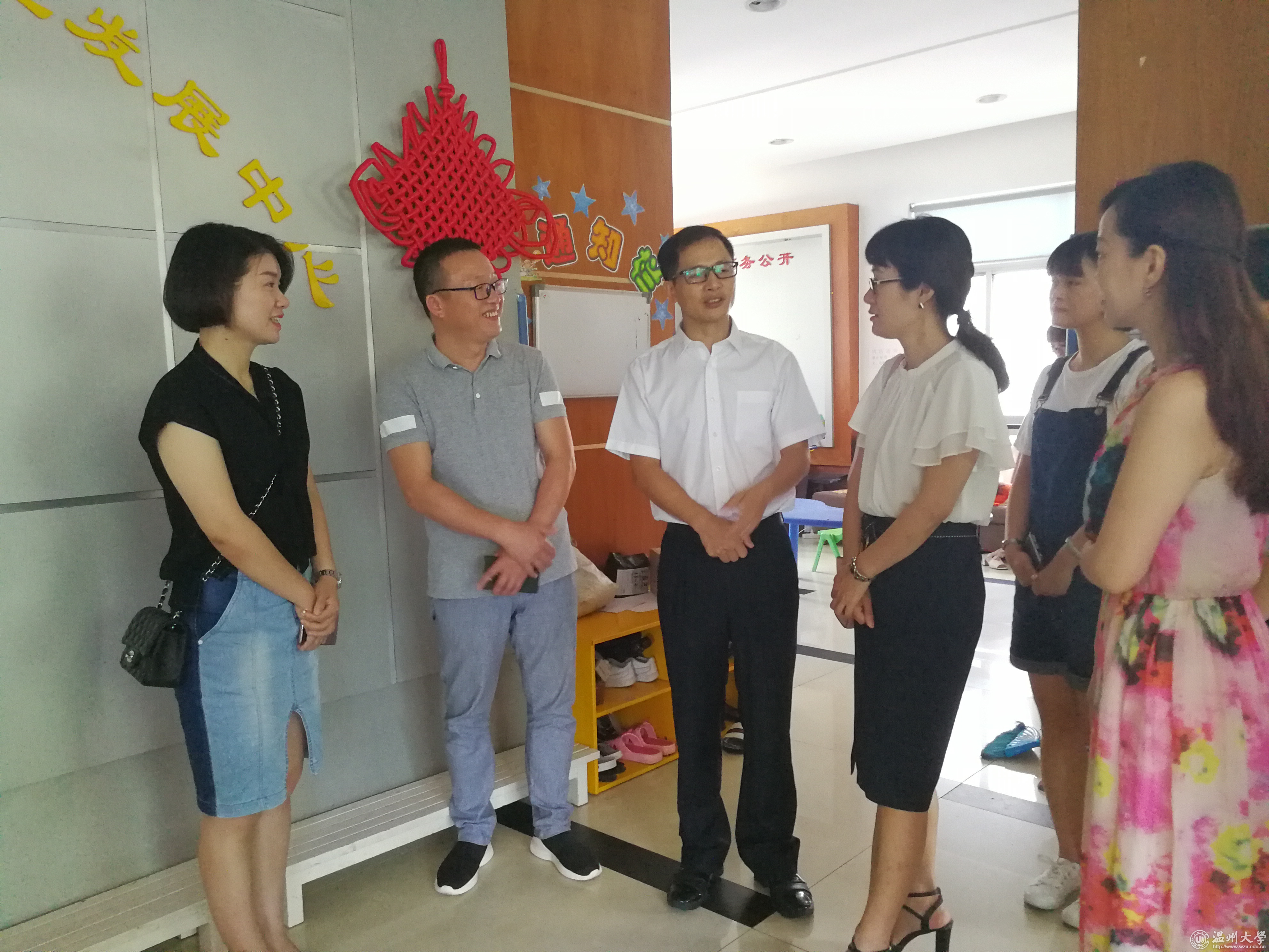 7月12日,副校长方益权一行来到温州市爱星缘儿童心理发展中心慰问教师教育学院心翼实践队。方益权肯定了实践队所作的成绩,指出心翼实践队的活动非常有意义。他强调,在传承中创新、发展,这样才能把队伍建设得更好。方益权希望心翼实践队能打造成一支有持久生命力的队伍。
