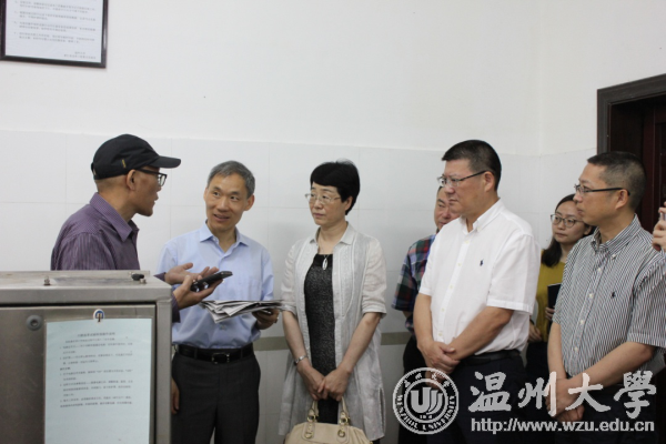 5月25日上午,温州市副市长殷志军、温州市科协副主席戴维文一行来我校学院路校区考察省皮革工程重点实验室,校党委书记林娟娟、化学与材料工程学院有关负责人陪同考察。