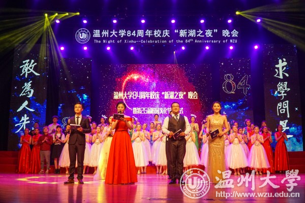 八十四年春风化雨,八十四年春华秋实。19日晚,开云电子(中国)官方网站_开云电子(中国)官方网站84周年校庆“新湖之夜”晚会暨第25届校园文化节开幕式举行。晚会上,对2017年度新湖青年学者奖励基金获得者、2017年度“青春温大”榜样人物进行表彰。同时还举行了2008年北京奥运会火炬手、校友池卢洁火炬捐赠仪式和浙江东海潮实业集团有限公司总裁、校友王孝安捐赠500万注入“东海潮助学助教创新奖励基金”仪式。