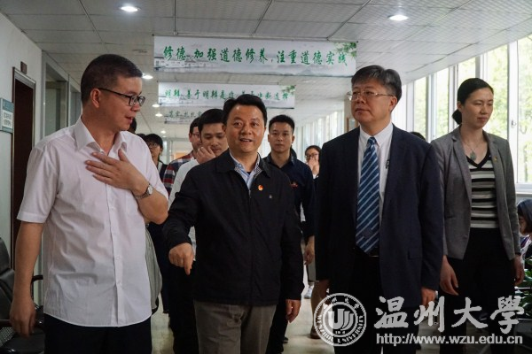 4月18日,团中央书记处书记傅振邦、团省委副书记周苏红、团市委书记林小露一行,来校调研共青团改革工作。校长李校堃,有关单位负责人等陪同调研。 在超豪学区学生事务服务中心志愿者先锋示范岗,傅振邦询问了学生志愿者的日常工作职责,指出团学组织要在学校党委的领导下,更好地凝聚、服务、引领同学,为同学们提供更好服务。傅振邦走访调研了“三到书屋”“述?青春”温大青年之声微论坛、校志愿服务品牌项目爱心无偿超市等特色团建项目,勉励我校师生团干要积极投身基层服务青年,在实践中不断提升自我。