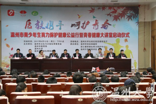 4月12日下午,“温州市青少年生育力保护健康公益行暨青春健康大讲堂”启动仪式在北校区信息楼报告厅举行。浙江省健康服务业促进会会长朱耀传,温州市卫计委党组成员朱国晓,校党委委员、宣传部部长潘玉驹,市教育局、市计划生育协会、市妇幼保健所负责人,学校有关单位负责人,以及300多名学校师生代表参加仪式。 潘玉驹致辞。他指出,当前青少年身心健康问题层出不穷,“温州市青少年生育力保护健康公益行暨青春健康大讲堂”的启动,体现了国家、社会对青少年健康成长的关怀。浙江省首个青少年生育力保护教育基地落户温州,是温州人“勇立潮头”精神的具体体现。温州市卫计委将全市首个青少年生育力保护公益项目落户温大,是对学校的信任和对学生的高度关怀。 浙江省爱菲丽生育力保护中心创始人徐世旺简要说明了生育力保护公益项目的基本情况。朱国晓介绍了我市青少年性健康教育的现状,以及普及青少年生育力保护工作的重要性和迫切性。 朱耀传指出,生育力保护是当下医学界非常热门的概念,让孩子从小就意识到并学会这种能力至关重要。他希望以“温州市青少年生育力保护教育基地”的成立为契机,先行先试,帮助浙江乃至全国的青少年更快乐、更自信地度过青春期。 徐世旺还为温大师生作题为“身体的悄悄话”的公益讲座。 我校历来重视大学生的身心健康教育和人的全面发展,投入了大量的人力、物力、财力,建立了一支优秀的身心健康教育队伍,打造了功能齐全的工作场所幸福工坊。学校曾荣获2010-2015年度全国大学生心理健康教育工作优秀机构、浙江省心理健康教育工作示范单位等荣誉。 此项公益行动引进欧盟最具影响力的青春期生理健康教育课程体系,通过该课程系统与全面的培训,帮助青少年掌握科学、正确的性与生殖健康知识,并为青少年答疑解惑、普及青春健康知识。