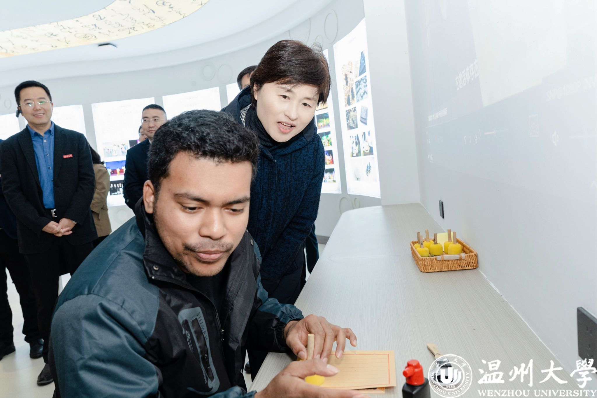 12月6日上午,教育部语言文字应用管理司司长周为一行对我校语言文字工作进行深入调研指导。浙江省语委办主任、省教育厅教材处(语管处)处长、二级巡视员朱鸿飞,温州市教育局党委委员、副局长朱景高陪同调研。我校党委书记钱强,副校长、党委委员王舜,副校长、党委委员王尧骏,国家语言文字推广基地相关人员以及人文学院负责人陪同调研。