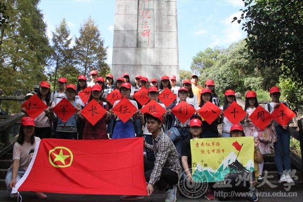 10月以来,我校团委号召各基层团支部,结合“纪念长征胜利80周年”专题开展系列团日活动,带领广大学子接受爱国主义再教育,弘扬伟大长征精神,将爱国主义教育和革命传统教育融入新生养成教育中,引领走好人生新的长征路。 教师教育学院16小学教育3班团支部开展以“爱国情 中国梦 我的梦”为主题系列活动,全体学生走入温州江心屿革命烈士纪念馆重温历史,观看长征电影,体验长征路,铭记祖国战胜苦难的历程,培养深厚的爱国之情。该院15小教4班团支部来到了温州市永嘉县红十三军旧址,用他们师范生独特的长征微课方式唤醒当代大学生对长征的记忆,更深刻认识到艰苦奋斗是传家宝,是立党、立国之本,也是个人的立德、立业之本;懂得了什么是长征精神——即坚定不移的革命信念,充满乐观的英雄气概,亲密团结的高尚品德,全心全意为人民服务的革命宗旨。 瓯江学院举行纪念红军长征胜利80周年书画作品展、朗诵《回顾长征胜利光辉岁月》、集体观看电影《长征》、制作衍纸作品、开展学习长征精神讲座、慰问参加过长征的老党员等丰富多彩的活动,来纪念红军长征胜利80周年。