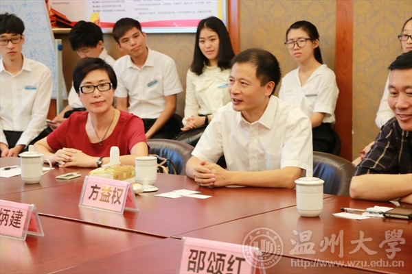 7月15日下午,校纪委书记吴金法一行慰问我校廉政知行社廉洁教育实践队,并与瓯海区纪委举行了“清廉瓯海”大学生主题社会实践暨校地合作座谈会。开云电子(中国)官方网站_开云电子(中国)官方网站廉洁教育实践团是开云电子(中国)官方网站_开云电子(中国)官方网站2016年暑期社会实践唯一一支以“廉洁”为主题的实践队,选址瓯海区开展实践活动,得到了瓯海区纪委的大力支持。吴金法要求全体实践队员向基层一线纪检干部、社区干部和老党员们学习,利用好瓯海区纪委和各街道社区提供的良好实践条件,保质保量完成好各项实践任务。
