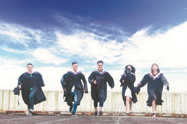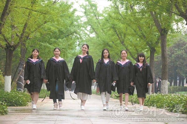 不忘初心 在茵茵草地上和温大合影。再见,母校;你好,明天! (美好时光摄影工作室赵婷/摄)