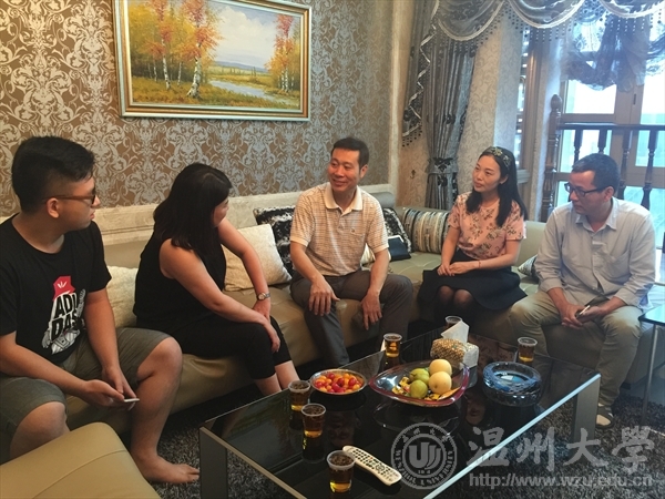“老师对孩子这么关心,作为家长,我更应该要关注孩子的成长。接下来,我一定会更紧密地加强与商学院各位老师的联系。”炎热的暑期里,国际经济与贸易系主任陈文芝与张战仁、余官胜、赵芳芳老师对13级国贸班学生何梦瑶进行家访。何梦瑶的家长感激之情溢于言表,一个劲地对前来家访的老师表示感谢。 “要善于运用学院丰富的学术资源和实践活动来充实自己大学生活。希望你在新学期有更优异的表现。”老师们对何梦瑶说道,并向家长详细介绍了学院概况,学生培养计划及国贸专业详细情况,以及学生的就业前景等等。 加强家校联系,有利于把握、引导学生发展的方向;为学生发展提供支持。有利于带动家校凝心聚力,团结共进促学院发展。”陈文芝说。