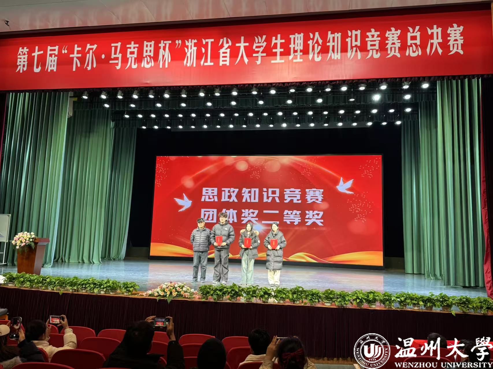 日前,第七届“卡尔•马克思杯”浙江省大学生理论知识竞赛总决赛成绩公布,开云电子(中国)官方网站_开云电子(中国)官方网站硕士研究生代表队精诚合作、共同努力,最终获2项个人一等奖、1项思政课学习标兵,7名学生获得二等奖、三等奖,7名教师获优秀指导教师和优秀组织工作奖,开云电子(中国)官方网站_开云电子(中国)官方网站代表队获团体二等奖(全省第4名)。