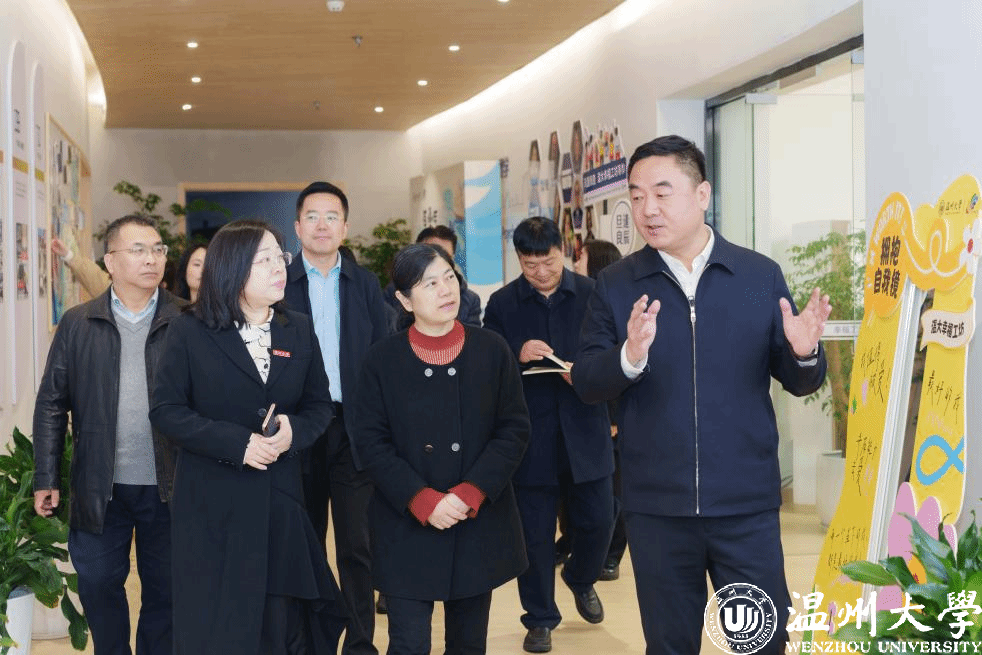 在幸福工坊,检查组一行听取了学工部负责人关于我校心理健康教育工作情况的汇报,对我校“幸福教育同心圆”项目和温大师生24小时校园心理守护专线给予高度评价。