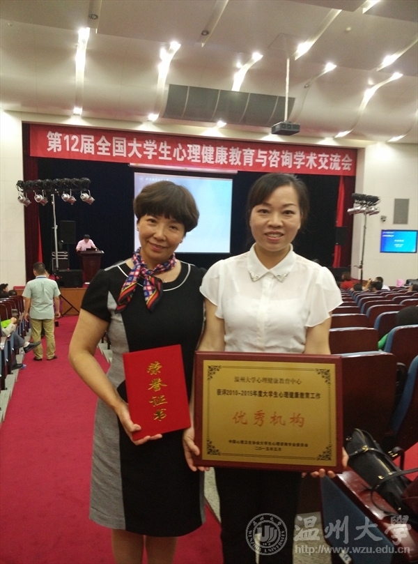 5月30日,第十二届全国大学生心理健康教育与咨询协会学术交流会召开,大会对在大学生心理健康教育方面做出显著成绩的单位和个人进行了表彰。由于我校工作特色鲜明,成效显著,被评为2010-2015年度大学生心理健康教育工作优秀机构,张海音老师荣获全国心理健康教育先进个人荣誉称号。 近五年来,我校心理健康教育工作坚持以积极心理学为基本理念,积极探索温大特色的“阳光心情,幸福心灵”心理健康教育工作模式。学校依托多种教育载体,重视普及教育,逐步形成教育、辅导、活动等一体化的心理健康教育工作体系,努力实现“让幸福的理念走入每一位师生的心里”。现已经基本形成课内教育(心理健康教育课程)与课外教育(心理健康教育活动)相结合,个体咨询与团体辅导相结合,规定项目(新生适应性团体辅导、班级心理主题班会)与自选项目(团体心理工作坊、心灵下午茶)相结合的心理健康教育工作模式,学校心理健康教育基地——幸福工坊受到广泛好评。