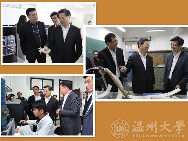 图为陈一新书记一行参观我校浙江省激光加工机器人实验室,浙江省软弱土地基与海涂围垦工程技术重点实验室和浙江省水环境与海洋生物资源保护实验室。 饶文吕 摄