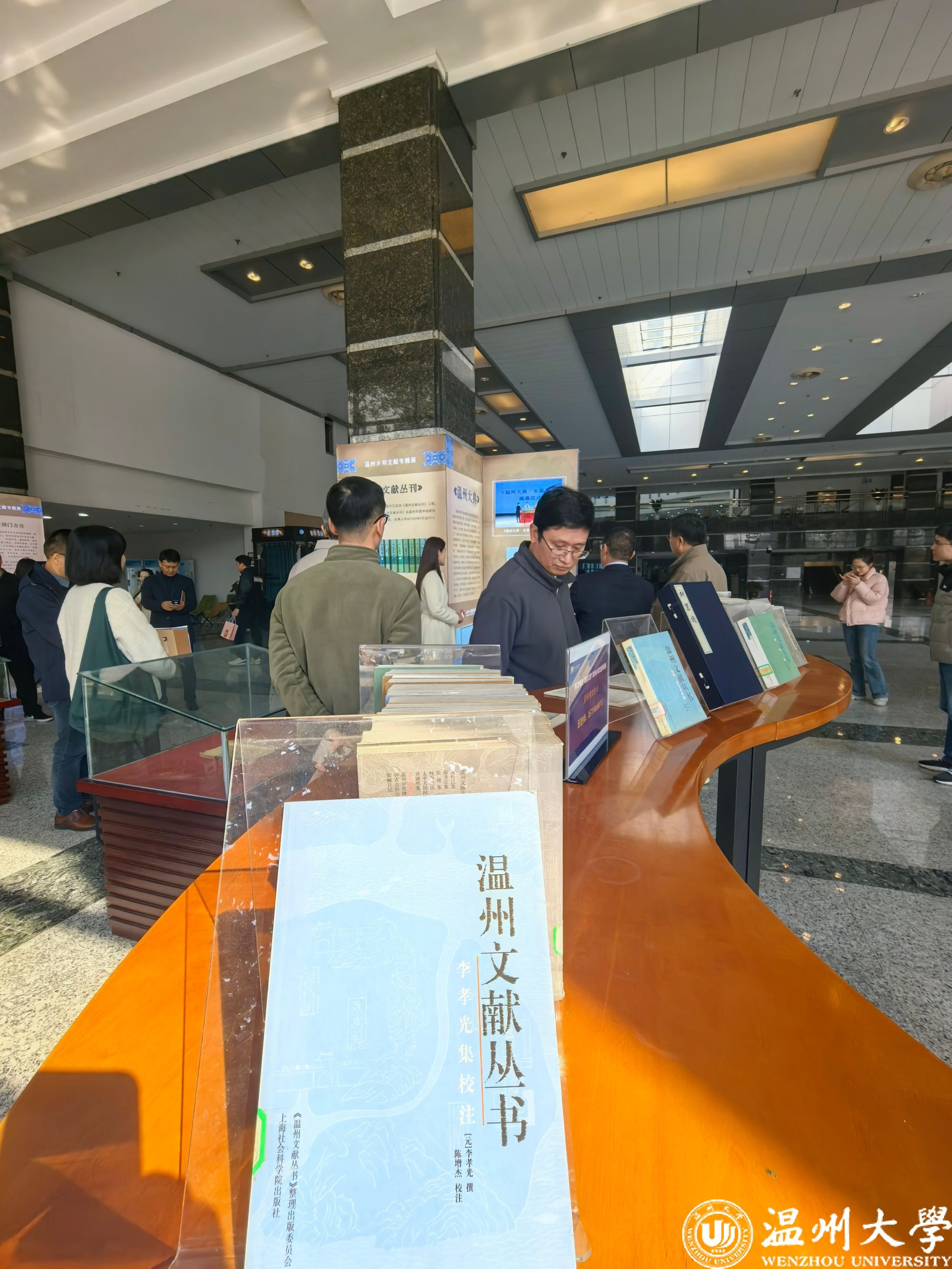 王舜致开幕辞。他高度肯定了展览的学术价值与文化意义,强调乡邦文献是瓯越文明的“精神基因库”。他指出,从孙衣言刊刻《永嘉丛书》到当代《温州大典》的编纂,历代温州学人以文献赓续文脉,既彰显了“敢为天下先”的精神底色,也为城市发展注入文化动能。他认为可以通过“校地协同、数字赋能”让典籍“活起来”,同时呼吁青年学子成为文化解码者与传播者。他期待以文献研究提炼文化基因,推动“AI+人文”跨界融合,让千年文脉在数字时代焕发新生,助力温州打造既有历史厚度又有创新锐度的文化新高地。