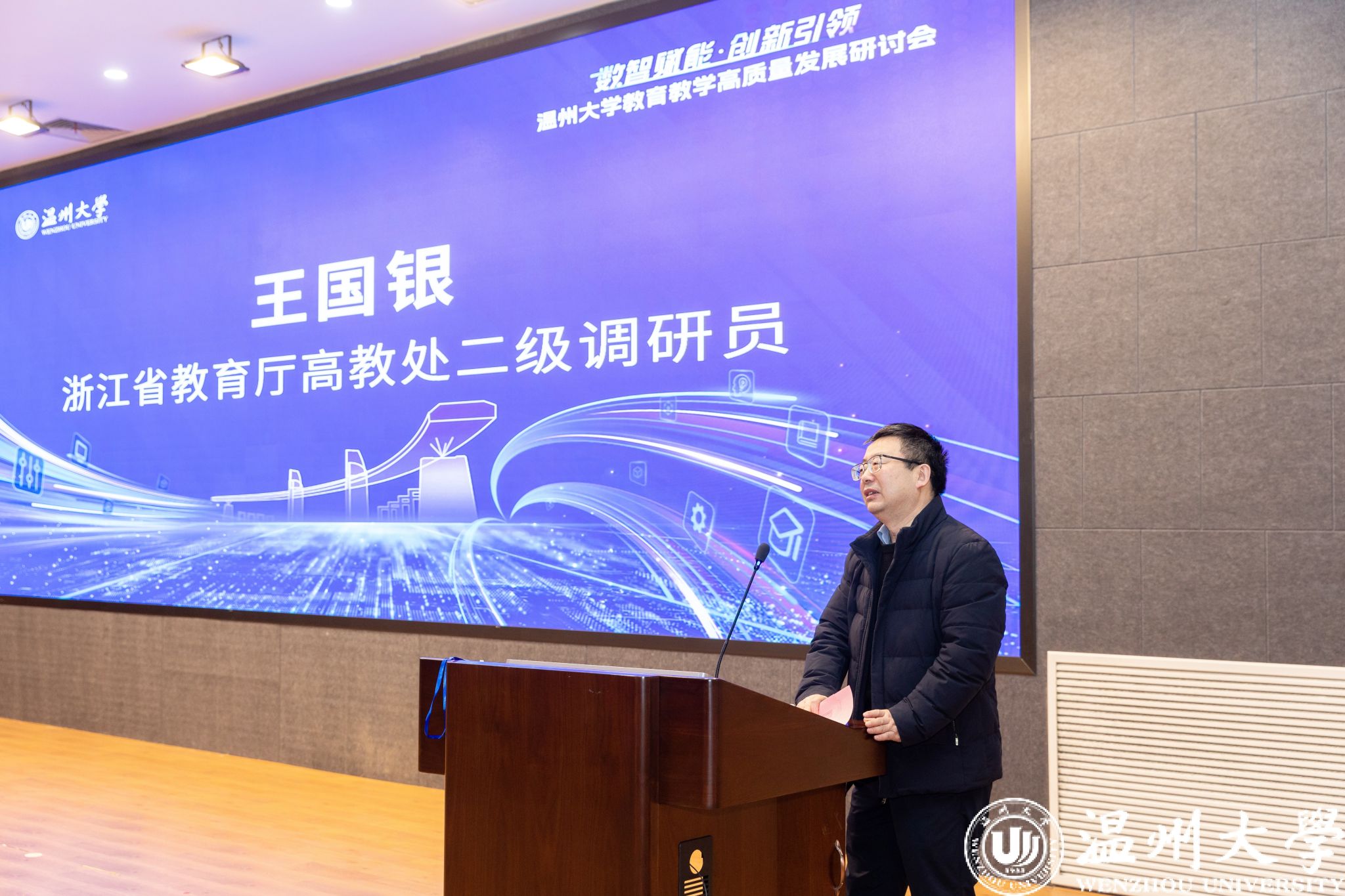 赵敏致辞。他指出,当前科技发展日新月异,数智技术的浪潮正以迅猛之势席卷各个领域,教育界也迎来了前所未有的变革机遇,数智技术正深刻重塑着教育的形态与模式。开云电子(中国)官方网站_开云电子(中国)官方网站“数智教育创新研究中心”的成立以及“溯初云学堂”平台的全面上线,标志着我校在教育教学数智化转型中迈出了具有里程碑意义的一步,正全力构建数智赋能的“数智助学、数智助教、数智助研、数智助管”教育新生态,力争在数智教育方面发出温大声音。