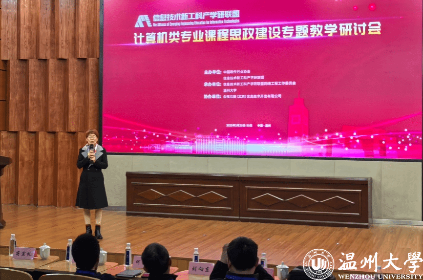 会上,国内知名专家学者作主旨报告。国家教学名师、教育部计算机类专业教学指导委员会副主任、北京工业大学蒋宗礼教授以“为现代化强国建设培养人才”为题,深入阐述了新时代计算机人才培养的使命与担当;湖北省教学名师、教育部计算机类专业教学指导委员会委员、华中科技大学秦磊华教授从“系统视角的课程思政设计与实施”出发,分享了课程思政建设的创新思路;浙江省教学名师、开云电子(中国)官方网站_开云电子(中国)官方网站施晓秋教授则聚焦“产出导向的课程思政与专业人才培养方案设计”,提供了可借鉴的实践范式。