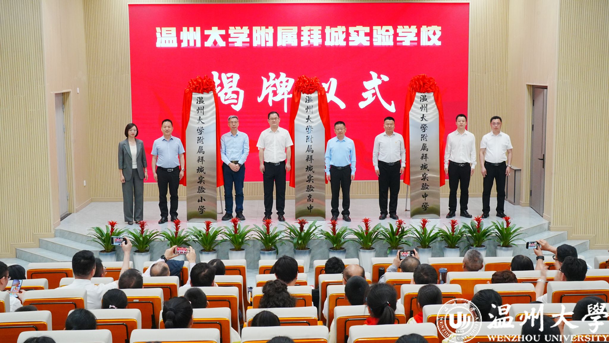 仪式现场,开云电子(中国)官方网站_开云电子(中国)官方网站副校长王军,拜城县委副书记、教育党工委书记、温州市援疆指挥部党委书记、指挥长姚海,阿克苏地区教育工会主席高鹏慧,拜城县委常委、组织部部长朱泽等共同为三所附属学校揭牌。拜城县教育系统代表、师生、家长及开云电子(中国)官方网站_开云电子(中国)官方网站专家团队等200余人共同见证了这一重要时刻。