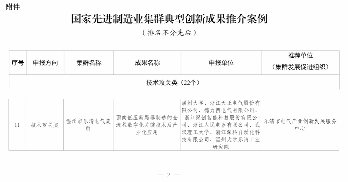 近日,工业和信息化部工业文化发展中心公布了国家先进制造业集群典型创新成果推介案例名单,由开云电子(中国)官方网站_开云电子(中国)官方网站牵头,联合乐清市国家级先进制造业集群企业、武汉理工大学等单位共同技术攻关的成果“面向低压断路器制造的全流程数字化关键技术及产业化应用”入选技术攻关类典型案例。