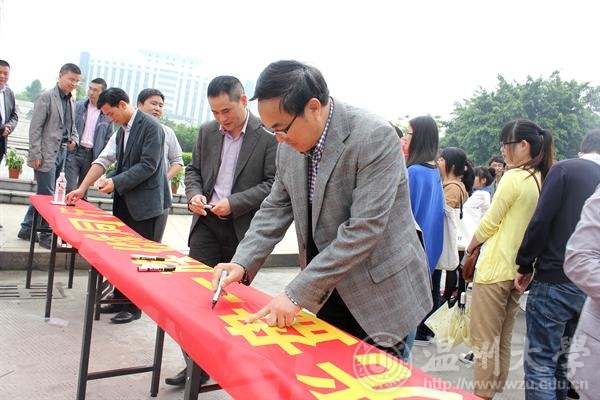 学生代表宣读“光盘行动”倡议;师生共同参与 “拒绝舌尖上的浪费 光盘一族你我同行”现场签名活动。 “米粒虽小犹不易,光盘虽简持之难”,“光盘行动”得到温大学子的关注,同学们都纷纷表示,要积极参与光盘行动,争做“光盘行动”的实践者。