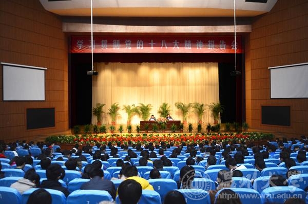 12月12日下午,副省长郑继伟来我校宣讲党的十八大精神。省政府副秘书长马林云、省教育厅副厅长禇子育、温州市副市长郑朝阳等省市领导,全体校领导及科级以上干部和学生代表共1200余人听取报告,校长蔡袁强主持。