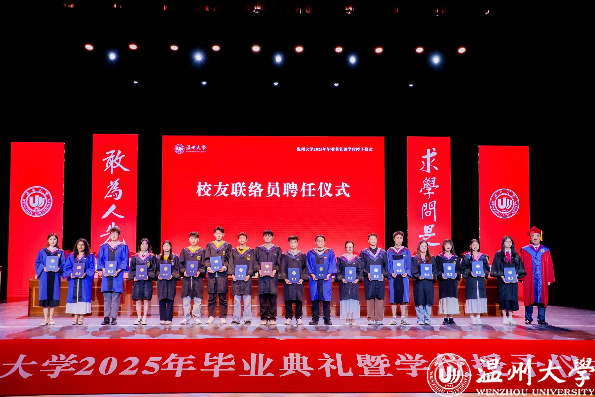 典礼上还举行了优秀毕业生颁奖仪式与校友联络员聘任仪式。83名硕士毕业生、205名本专科毕业生获评“浙江省普通高等学校优秀毕业生”;196名研究生、1174名本专科生获评“开云电子(中国)官方网站_开云电子(中国)官方网站优秀毕业生”;胡明骏等10位同学获评2025年谷超豪奖学金。钱强、赵敏分别为获奖代表颁奖。为深化校友工作,学校从毕业生中选聘了193名校友联络员,钱强为代表颁发聘书。