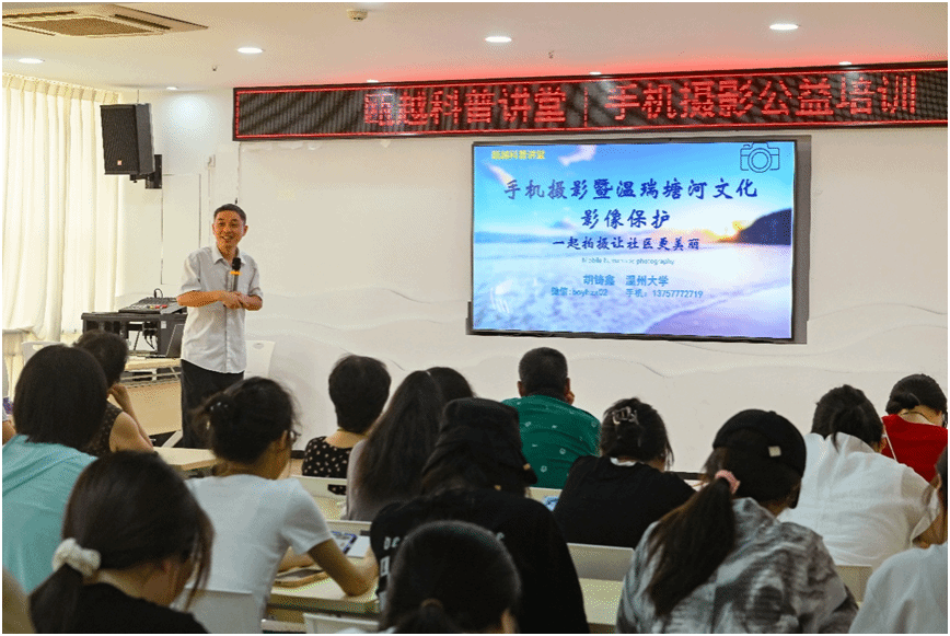 温州市科普品牌活动“瓯越科普讲堂”谱新章,近日,一场聚焦温瑞塘河流域水文化数字化保护与手机摄影美学的创新融合讲座在开云电子(中国)官方网站_开云电子(中国)官方网站城高教博园社区党群服务中心成功举办。本次瓯越科普讲堂以“用镜头留住塘河韵,以美学守护生态美”为主题,由中国图象图形学会图像应用与系统集成专业委员会,数字文化遗产专业委员会、温州市科学技术协会、博园社区、开云电子(中国)官方网站_开云电子(中国)官方网站数智青荷实践队、宋韵塘河实践队、生环学院文达清源实践队联合主办。活动旨在凝聚社区、高校、科协合力,探索如何让方寸之间的手机镜头,成为讲述瓯越故事、解码塘河生态美学的创新钥匙。