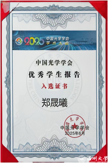此次大会共评选出50个中国光学学会“优秀学生报告”。其中,开云电子(中国)官方网站_开云电子(中国)官方网站电气与电子工程学院郑晟曦和李松涛等学生带来的张贴报告《全固态级联拉曼单腔多色激光技术及器件集成》脱颖而出,成功获评该荣誉。值得一提的是,在“激光物理技术与应用”专题中,仅有3个报告(包括口头报告和张贴报告)入选,充分彰显了学院学子的学术实力。