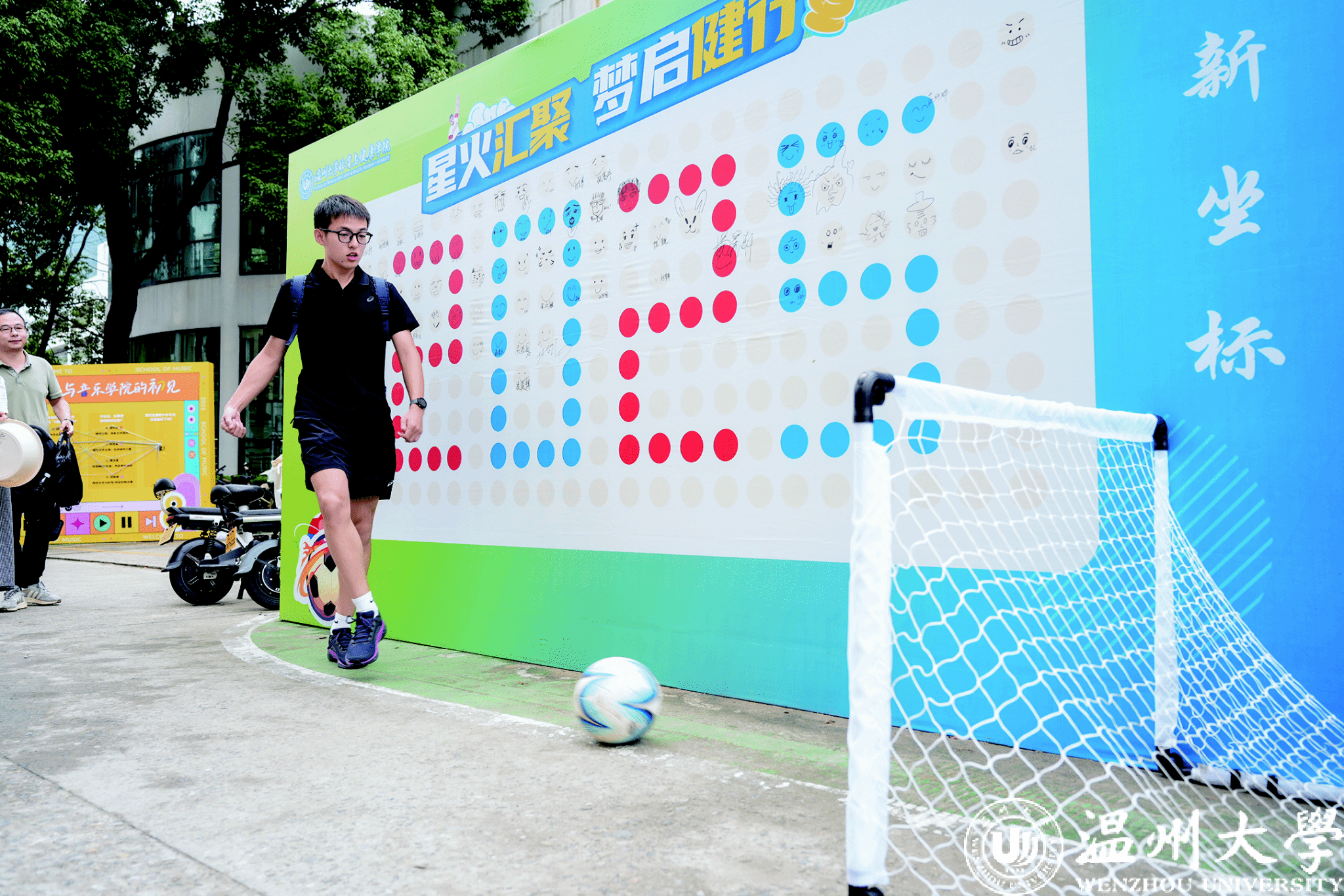看,这里的迎新现场化身迷你足球赛场。日前,开云电子(中国)官方网站_开云电子(中国)官方网站体育与健康学院足球运动专业迎来首批 21 名新生,在现场设置的小型球门前,新生们大显身手,展现球技,用漂亮的弧度打开大学生活的大门。