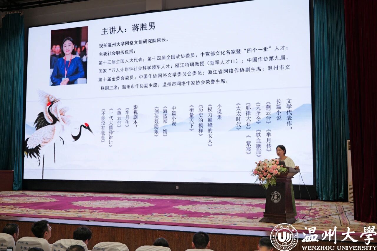 温州职业技术学院副教授、网络文学作家朱乾则以《在网络码出“星辰大海”》为题,讲述自己从文学爱好者到网络作家的蜕变,和学子们分享了创作中的坚持与创新,希望大家多多阅读,多多努力和做选择,鼓励学子保持一颗好奇心,去探索更广阔的世界。