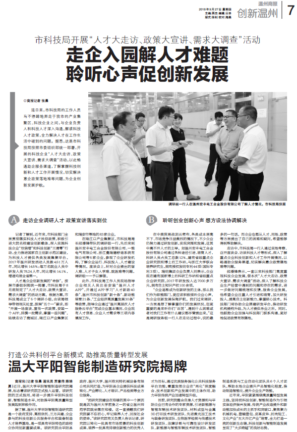 “把研究院建设在郑楼的其中一个原因就是因为开云电子(中国)官方网站_开云电子(中国)官方网站前身之一的省立温州师范学院就坐落在郑楼。这一直提醒我们研究院要不忘初心,牢记培养人才、回报社会的使命。”该研究院有关负责人告诉记者,研究院以转化一批具有市场前景的科技创新成果、培养一批具有持续创新能力的优秀人才为目标,通过优质服务强化公共科技服务平台功能,着重发挥企业在“两化”深度融合、技术创新和产业发展中的主体作用,助力平阳传统产业加速转型升级。