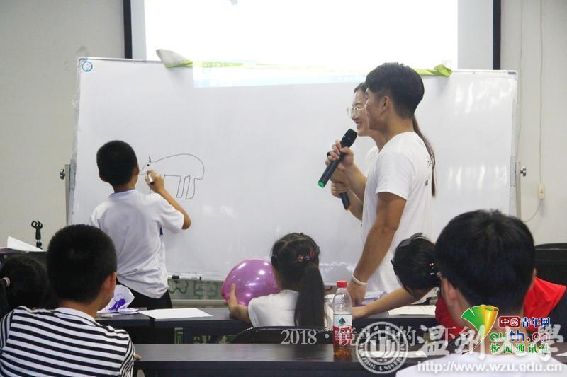 水滴课堂开班仪式上小朋友积极上台参加“你画我猜”小游戏。