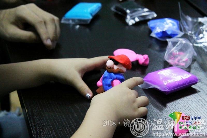 小朋友在实践队员的指导下捏出的橡皮泥成果。