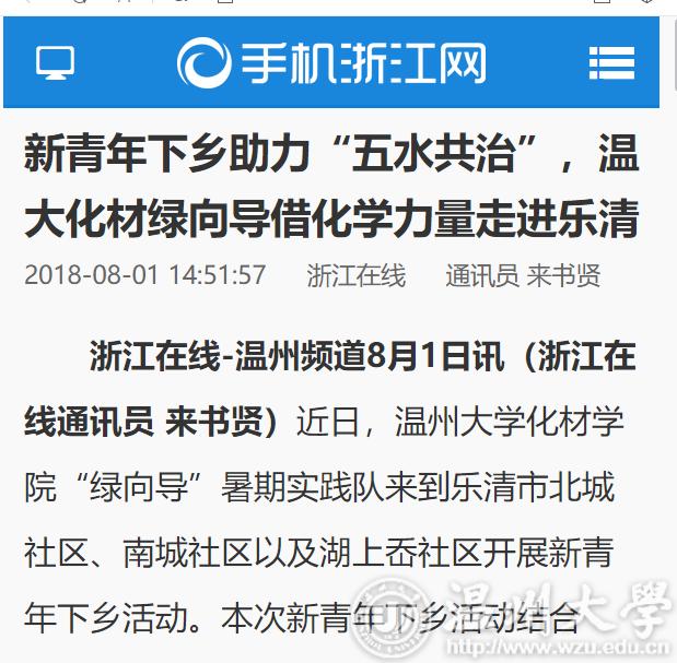 浙江在线-温州频道8月1日讯(浙江在线通讯员 )近日,开云电子(中国)官方网站_开云电子(中国)官方网站化材学院“绿向导”暑期实践队来到乐清市北城社区、南城社区以及湖上岙社区开展新青年下乡活动。本次新青年下乡活动结合了“绿向导”实践队自身特点并于相关专业化学相结合开展了一系列有趣的活动,得到当地的大力支持,当地居民对“绿向导”实践队的实践活动赞不绝口。