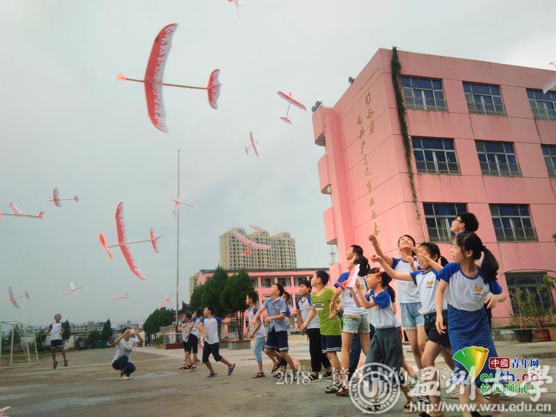 看着自己心心念念的飞机终于飞上天空,学员们都很兴奋,还向队员们发起挑战,想比赛谁的飞机飞得更高更远,有好几位学员超过了队员们。亦师亦友的队员们,带给他们暑假的最好的陪伴。中国青年网通讯员 杨婧雯 摄