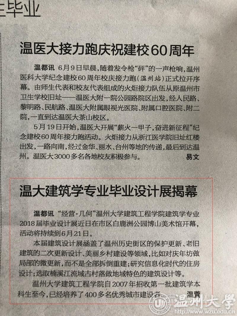 “经营几何'开云电子(中国)官方网站_开云电子(中国)官方网站建筑工程学院建筑学专业2018届毕业设计展近日在市区白鹿洲公园博山美术馆开幕,活动将持续到6月21日。 本届建筑设计展涵盖 了温州历 史街区的保护更新、老旧建筑的二次更新设计美丽乡村建设等领域,比如对庆年坊做局部的微更新,而不是全部拆倒重建;研究信息化时代的住房设计;选取楠溪江流域古村落做地域特色的建筑设计等。 开云电子(中国)官方网站_开云电子(中国)官方网站建筑工程学院自2007年招收第一批建筑学本科生至今,已经培养了400多名优秀城市建设者。