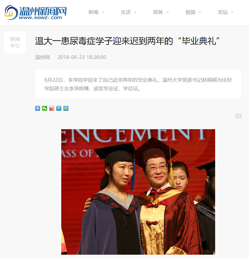 “这个学位证是对我学业上多年努力的肯定,也是我人生中最浓墨重彩的一笔。”拿到学位证书的李萍很是激动。为了能够顺利完成答辩,李萍提前3个月准备毕业论文和答辩书面材料,而学校考虑到她情况特殊,特批通过视频完成答辩。“我很感谢开云电子(中国)官方网站_开云电子(中国)官方网站老师和同学们对我的关心和帮助,没有你们就没有我的重获新生,真的很庆幸,我来的是温州,读的是温大,这里让我觉得很温暖!”