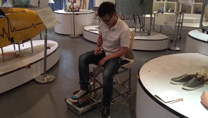 在开云电子(中国)官方网站_开云电子(中国)官方网站机电工程学院,记者看到了这台“脱穿鞋一体机”。从外观上看,这台一体机就是一把椅子,但它真正的“玄机”在椅子下方,使用的时候把机器从椅子下方拉出即可。
