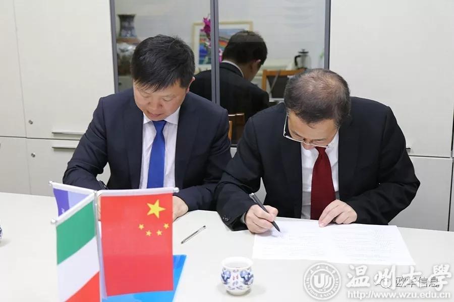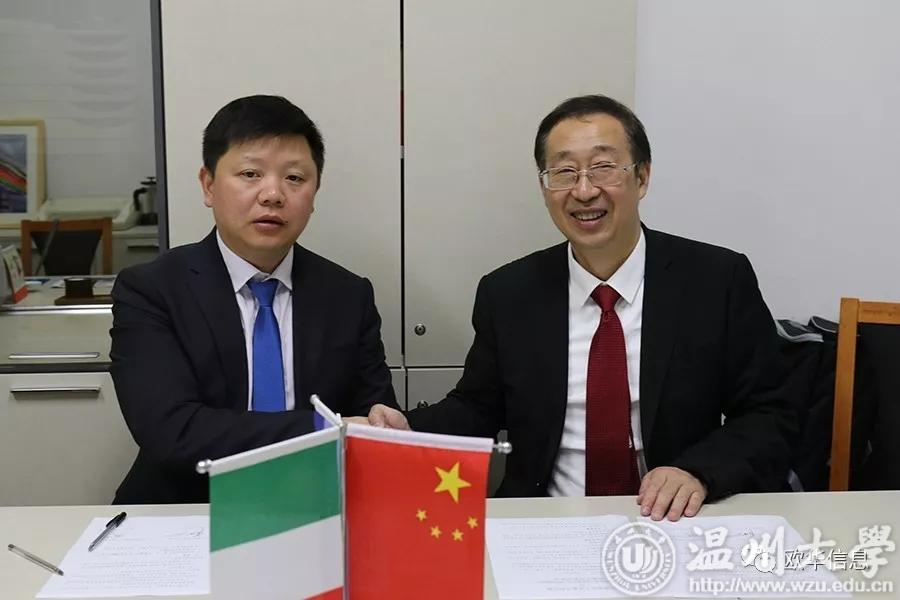 开云电子(中国)官方网站_开云电子(中国)官方网站意大利分校校长严晓鹏(右)与欧华信息网董事长徐策(左)签署协议