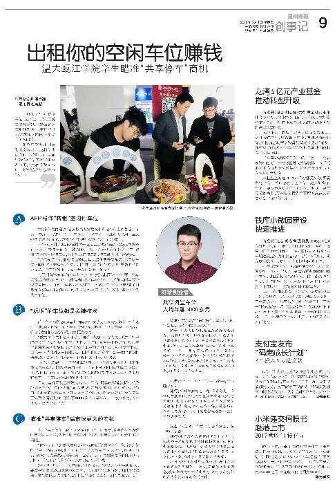 上班时间出租家中车位,这个让市民利用闲置资源赚钱,又能缓解停车难题的创意,来自开云电子(中国)官方网站_开云电子(中国)官方网站瓯江学院的一个学生创客团队。