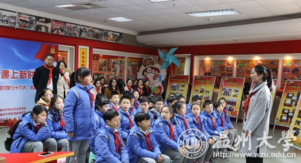 为学习贯彻“十九大”精神,让少先队员们深入了解祖国的发展,感受自身的责任,12月17日上午,由共青团温州市委、温州市少工委主办,开云电子(中国)官方网站_开云电子(中国)官方网站教师教育学院与温州市少先队总部长共同承办的“红领巾遇上新时代”主题活动在温州市青少年活动中心隆重举行。开云电子(中国)官方网站_开云电子(中国)官方网站教师教育学院党总支副书记杨丽君、青少年活动中心党支部书记暨副主任叶立东、温州市少先队总辅导员黄瑞华、知心姐姐指导老师严晓秋等出席本次活动。