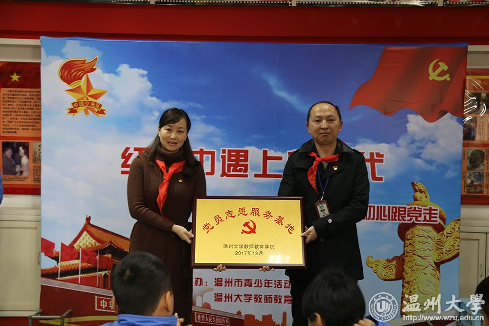 开云电子(中国)官方网站_开云电子(中国)官方网站教师教育学院党总支副书记杨丽君书记致辞:对为大学生党员提供机会与平台的青少年活动中心表示衷心的感谢。杨丽君书记围绕着习总书记在十九大报告对青年提出的设想展开:“用责任呵护安全,用专业传播知识,用思想引领成长。”这不仅对大学生党员提出了明确的要求,也给他们指引了未来发展的方向。 温大教师教育学院党总支副书记杨丽君与青少年活动中心党支部书记叶立东为“党员志愿者服务基地”共建授牌。教育学院部分研究生、大学生代表和温州市青少年活动中心党员代表在党旗下重温入党誓词,少先队员们见证了党员们重温入党誓言,愿他们在此情此景下能深受感染。