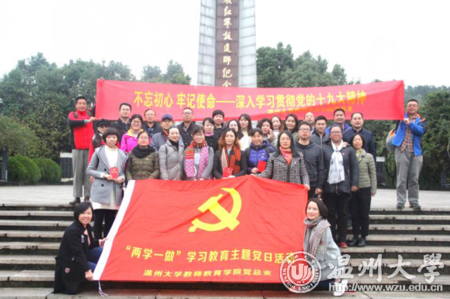 11月25日,开云电子(中国)官方网站_开云电子(中国)官方网站教师教育学院党总支来到著有“浙江延安”之称的平阳革命根据地,开展了“不忘初心,牢记使命”为主题的党日活动暨教职工革命传统教育活动。 当天,教师教育学院的党员教师参观了温州浙南(平阳)革命根据地旧址群,一同深入“浙江延安”,唤醒红色回忆。登上三十八级象征着出征日期的台阶,踩过乱石铺就的代表着征途艰险小路,站在北上抗日出征门前,仿佛还能想起当年老区乡民门夹道欢送依依不舍的情景和北上出征敌寇,捍卫我中华国威的铮铮誓言。远征北上的战场硝烟,已经在历史的浪潮中湮没,唯那栩栩如生的白石板墙抗战浮雕再现了曾经的峥嵘岁月。接着,学院党总支书记杨立淮带领教师党员重温入党誓词、向革命先烈鞠躬默哀,唤起大家对那段红色岁月的记忆,并在党旗下表示要为党的教育事业奋斗终生的决心。