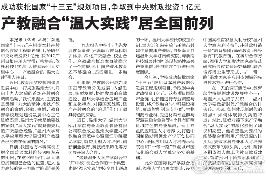 附:“产教融合”温大实践居全国前列.pdf
