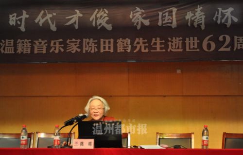 活动现场,陈田鹤先生的大女儿、原中国社会科学院研究员陈晖以“我的父亲陈田鹤”为题作报告。