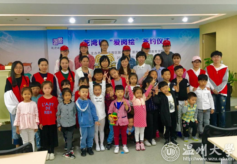 为丰富广大青少年儿童的课余生活,帮助孩子们养成爱阅读的好习惯,在动手动脑中学习成长,2017年10月14日上午,温大教师教育学院“知心姐姐”志愿服务队走进龙湾图书馆,举行“四叶草课堂·爱阅绘”签约仪式,温大教师教育学院党总支副书记杨丽君、温州龙湾图书馆馆长陈嘉河、副馆长朱佳佳、温大教师教育学院学生科副科长严晓秋出席。
