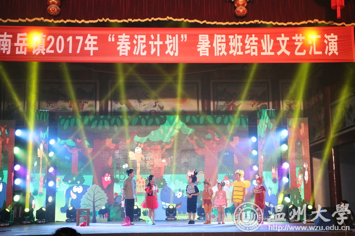 今天晚上,南岳镇春泥计划班结业汇报演出在南岳镇后塘文化礼堂火热上演。幼升小的开蒙礼、合唱、朗诵、舞蹈、越剧、儿童剧、服装走秀等11个形式多样的文艺节目赢得阵阵掌声。这场由南岳小学、南岳后塘校区春泥班孩子呈现的演出,是由开云电子(中国)官方网站_开云电子(中国)官方网站教师教育学院“知心姐姐”暑期实践队的成员编排组织,服装、道具均是出自成员之手。